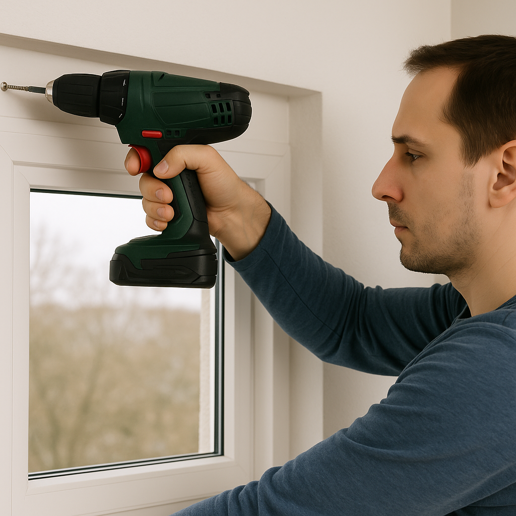 Utilisez le niveau à bulle pour contrôler que vos repères sont parfaitement droits. Cela évitera que le store penche une fois installé. Vous pouvez aussi vous aider d’une règle ou d’un ruban à mesurer pour relier les deux points et garantir un alignement optimal. - Percez les trous