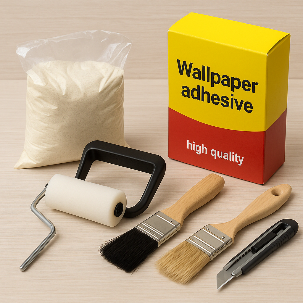 - De la colle à papier peint adaptée (intissé, vinyle, traditionnel)