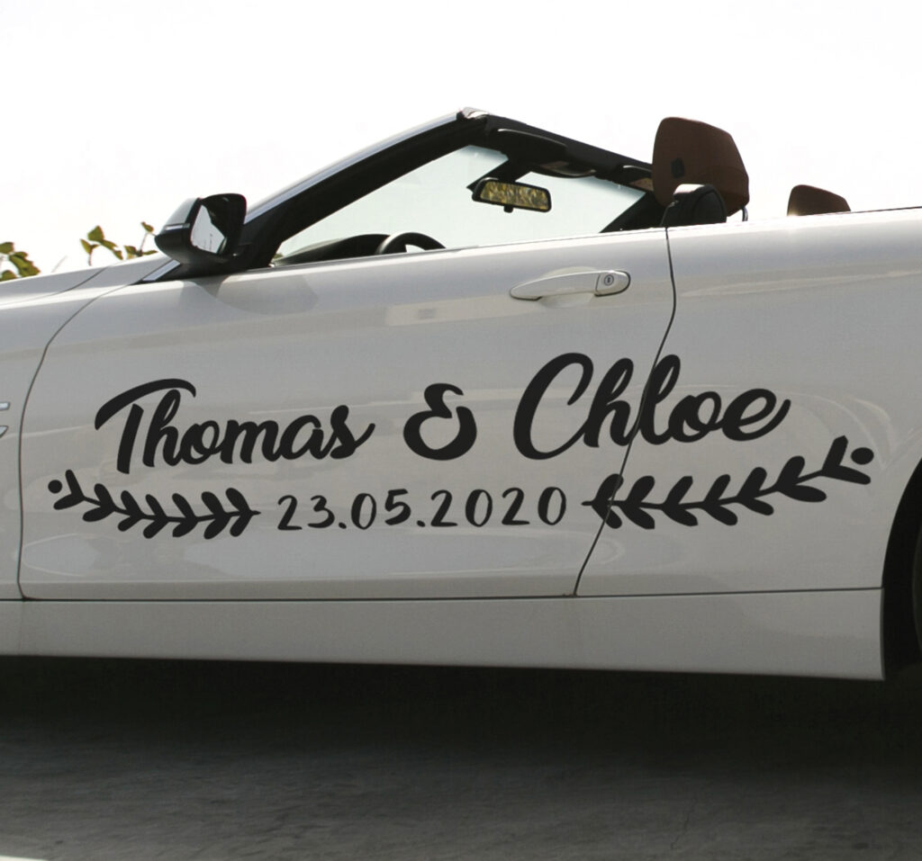 Sticker voiture personnalisable mariage avec laurier