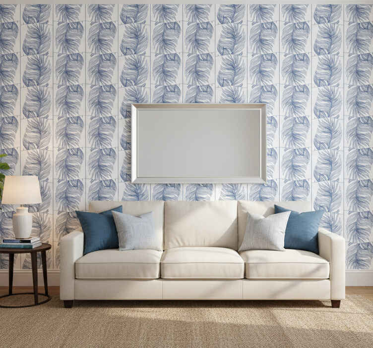 Papier peint moderne hampton bleu plumes
