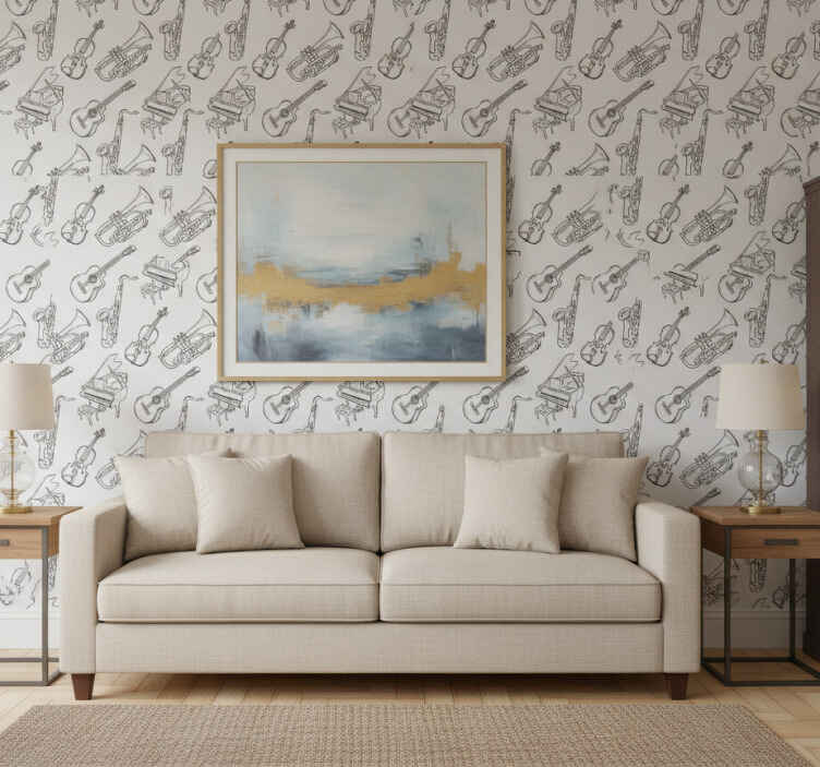 Papier peint moderne motif instruments de musique dessinés