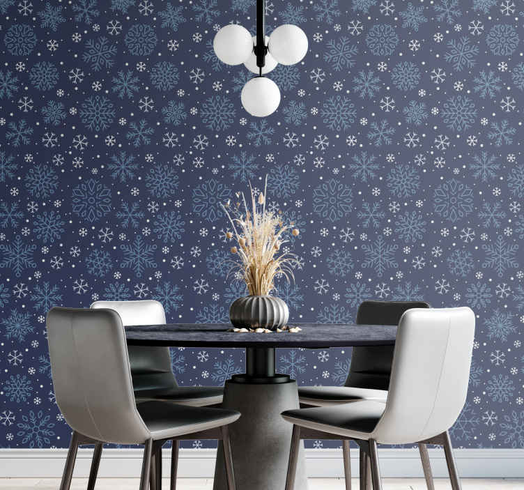Transformez votre intérieur avec notre Papier peint noel motifs de flocons de neige. Ce design captivant présente des flocons de neige délicats sur un fond bleu, évoquant l'esprit de Noël et la magie de l'hiver. Son motif géométrique et floral ornemental apporte une touche chaleureuse et festive à votre décoration saisonnière, parfaite pour créer une atmosphère accueillante pendant les fêtes.
