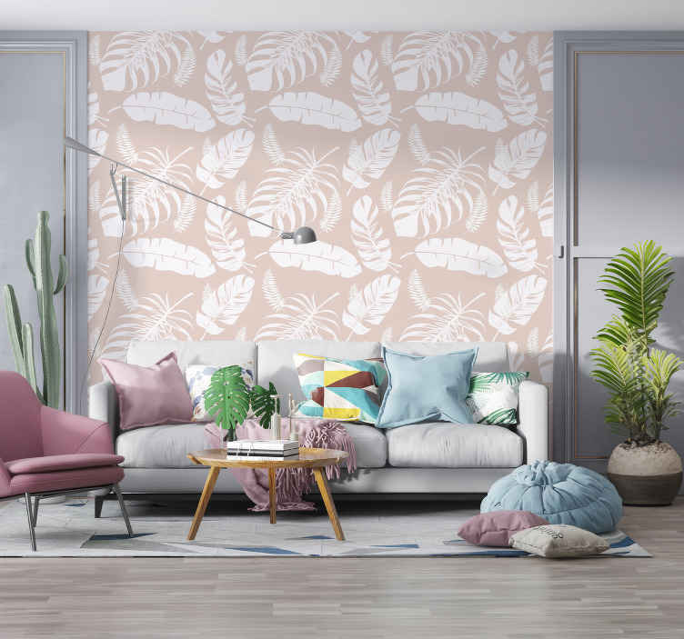Papier peint beige feuilles de banane