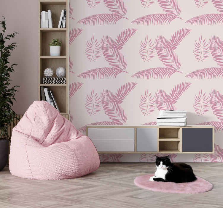 Papier peint rose grandes feuilles de palmier