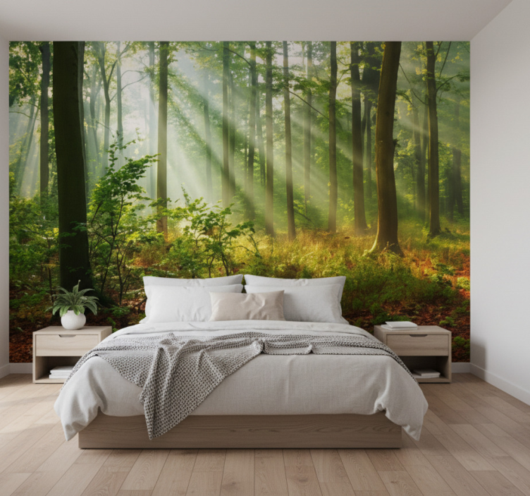 Papier peint forêt bosquet ensoleillé du matin