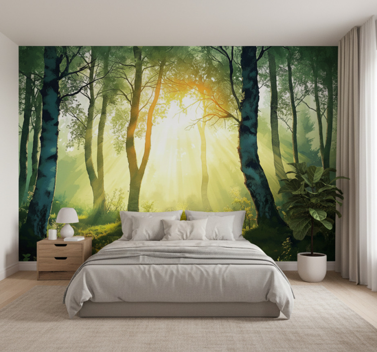 Papier peint forêt fresque de bouleaux ensoleillés