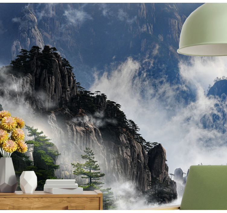 Découvrez notre papier peint nature scène de brouillard montagneux, une œuvre d'art murale qui évoque la sérénité des montagnes embrumées. Avec des motifs de montagnes majestueuses, un ciel nuageux et une brume délicate, ce design immersif vous transporte au cœur de la nature. Les arbres se dressent fièrement, ajoutant une touche organique à ce paysage apaisant, parfait pour transformer votre intérieur en un havre de paix.