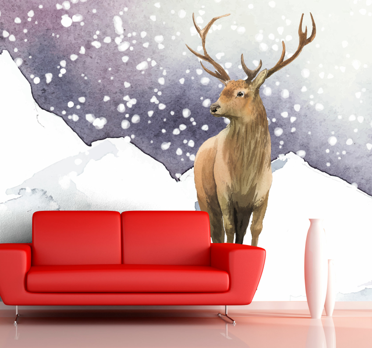 Plongez dans un univers enchanteur avec notre tapisserie animaux scène de cerfs majestueux. Ce design captivant, où un cerf majestueux se dresse fièrement dans un paysage hivernal, évoque la sérénité des montagnes recouvertes de neige. L'aquarelle délicate met en valeur la faune sauvage, créant une atmosphère apaisante et inspirante pour votre intérieur.