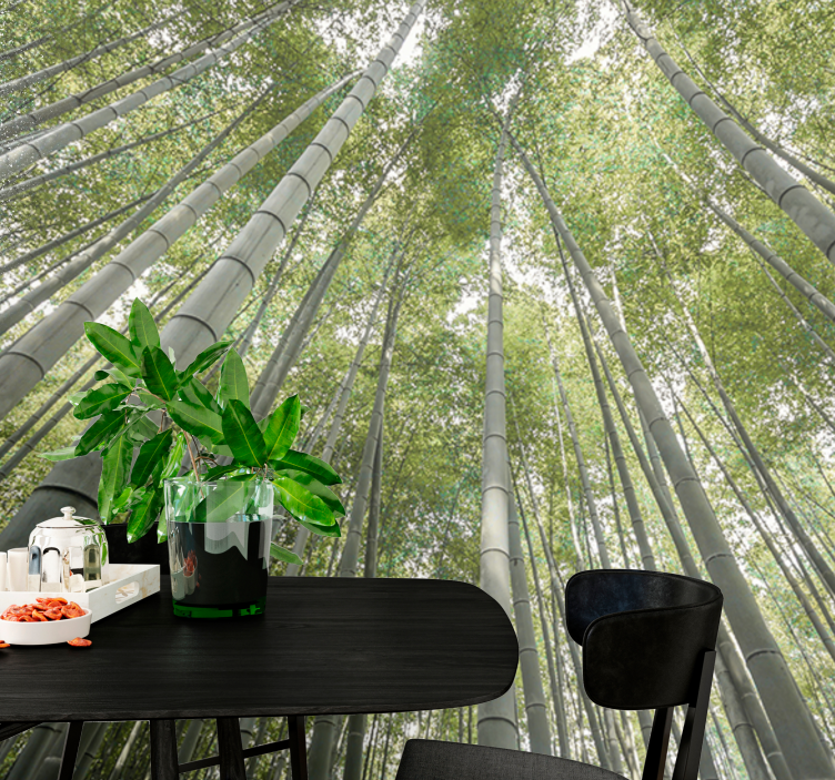 Référence: F12097Le design présente une forêt de bambous imposante vue d'en bas, mettant en valeur de grands et fins troncs de bambou s'élevant vers le ciel. Les feuilles vertes luxuriantes filtrent la lumière en douceur, créant une atmosphère sereine, parfaite pour ceux qui recherchent une connexion avec la nature.