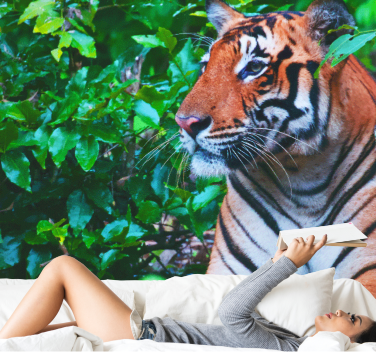 Plongez dans un univers captivant avec notre Tapisserie jungle tigre majestueux en contemplation. Ce motif enchanteur évoque une forêt luxuriante où le tigre majestueux se fond harmonieusement dans la nature, entouré de feuilles vibrantes et d'une faune riche. Chaque image de cette tapisserie est un véritable hommage à la beauté sauvage, apportant une touche d'exotisme à votre intérieur.