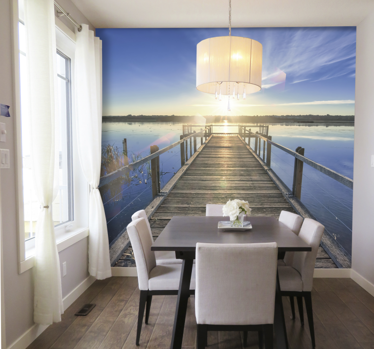 Appliquez facilement la Tapisserie paysage tapisserie paysage vue sur le coucher de soleil au port en utilisant de la colle sur votre mur. Il vous suffit de quelques outils comme un rouleau, un pinceau, une brosse et un cutter pour obtenir un résultat impeccable !