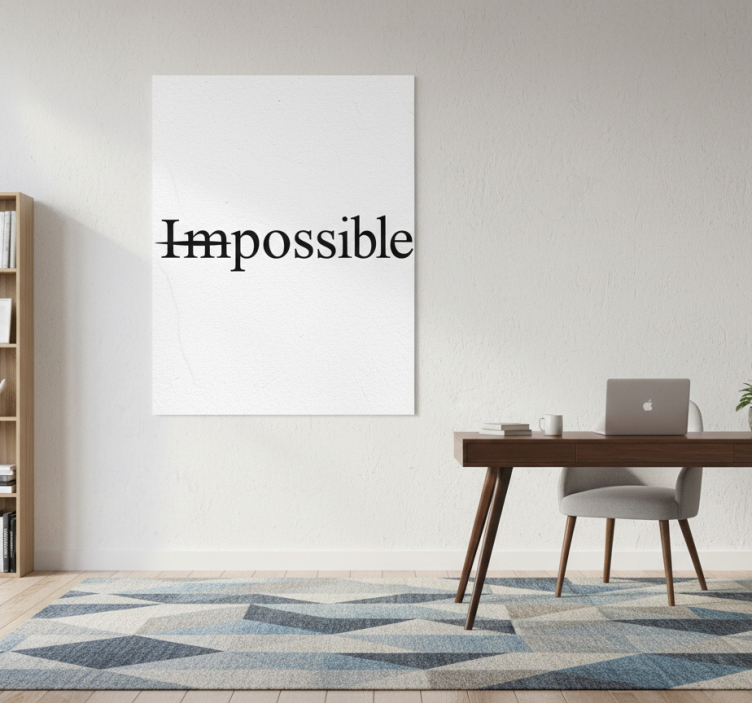 Cette Affiche bureau affiche bureau rien n'est impossible est parfaite pour transformer votre environnement de travail ! Imaginez un espace qui vous inspire chaque jour, où chaque regard sur cette œuvre vous rappelle que tout est à votre portée. En l'intégrant à votre décoration, vous créez une atmosphère positive et stimulante, propice à l'épanouissement et à l'innovation. Ne laissez pas votre bureau être un simple lieu de travail, faites-en un endroit où vos ambitions prennent vie !