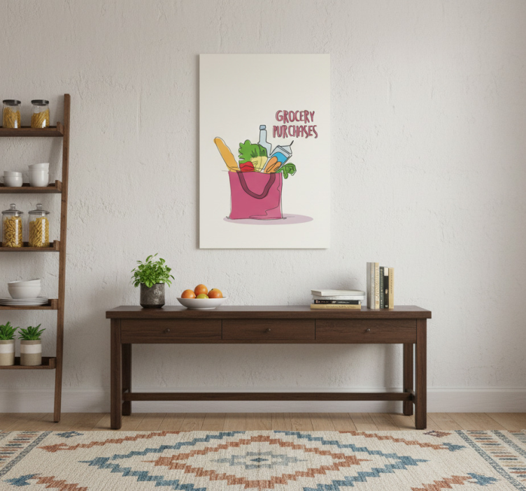 Cette Affiche cuisine affiche cuisine illustration épicerie est l'élément parfait pour égayer vos murs et créer une ambiance chaleureuse. Elle invite à la convivialité et à la passion de la cuisine, rendant chaque repas plus spécial. Ajoutez un charme unique à votre décoration intérieure et inspirez-vous à concocter de nouveaux plats dans cet espace revitalisé !