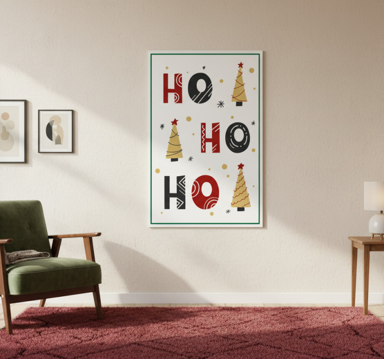 Référence: G1093Découvrez notre Affiche noël design texte joyeux noël ho ho ho, un véritable chef-d'œuvre visuel qui illuminera votre intérieur pendant les fêtes ! Avec ses couleurs vives et son design unique, cette affiche apportera une touche festive et chaleureuse à votre décoration. Son motif captivant, alliant élégance et esprit de Noël, saura séduire petits et grands. Préparez-vous à recevoir vos invités dans une ambiance joyeuse et conviviale !