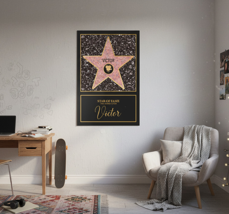 Référence: G759Transformez votre espace avec notre Affiche pour salon étoile de la renommée personnalisée. Son design captivant et élégant attire immédiatement l'attention, ajoutant une touche de sophistication à votre intérieur. Le motif unique, combinant éclat et originalité, en fait un choix idéal pour ceux qui souhaitent personnaliser leur décoration avec style.