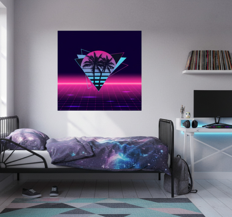 Référence: G773Découvrez notre Affiche pour salon palmier style vaporwave, une œuvre d'art captivante qui fusionne des couleurs pastel vives et des motifs inspirés des années 80 pour apporter une ambiance rétro et tropicale à votre intérieur. Ce design ludique et frais, avec ses palmiers majestueux et ses nuances de rose et de bleu, est parfait pour égayer n'importe quel espace de vie.