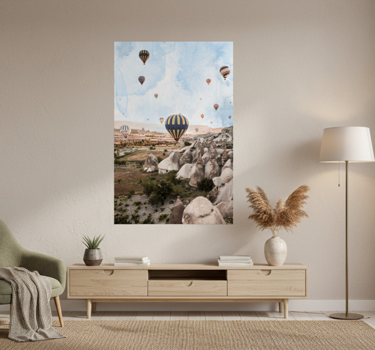 Transformez votre intérieur avec notre Affiche villes et pays montgolfières de cappadoce. En ajoutant cette pièce unique à votre décoration, vous créez une ambiance chaleureuse et inspirante qui invite au voyage. Laissez-vous porter par les couleurs et les motifs qui éveillent les souvenirs et encouragent l'imagination !