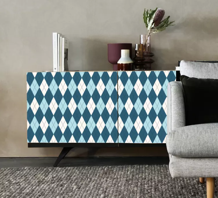 Découvrez notre Adhésif meuble configuration en forme de diamant, un choix élégant qui transformera vos meubles en véritables œuvres d'art. Avec son motif captivant de rhombe, de losanges et de diamants, ce design géométrique en bleu apportera une touche décorative unique à votre intérieur, parfait pour ceux qui aiment le style moderne et audacieux.