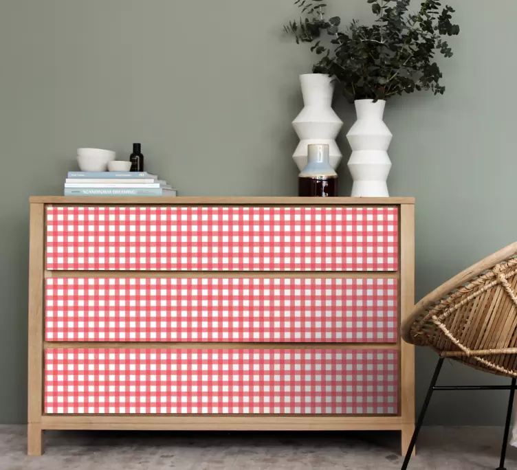 Adhésif meuble motif à carreaux rouges