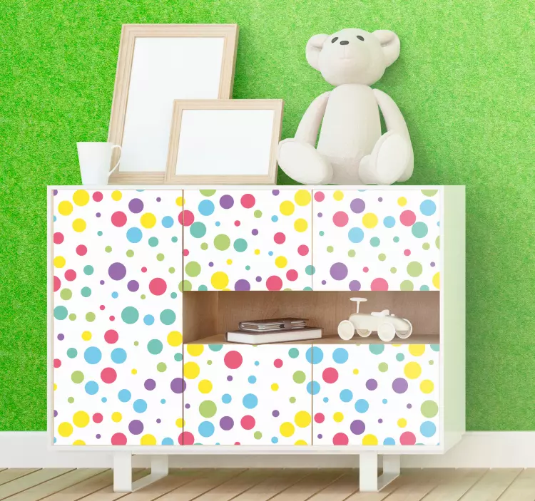 Transformez votre intérieur avec notre Adhésif meuble motif à pois vibrants, un choix audacieux et espiègle qui apporte une touche colorée à vos meubles. Ce design captivant, parsemé de pois ludiques et de formes géométriques, est parfait pour ceux qui souhaitent ajouter une note de gaieté à leur décoration. Avec ce motif à pois, chaque pièce devient unique et pleine de vie !