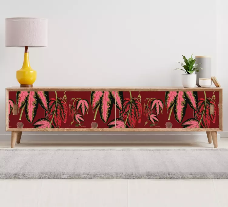 Découvrez notre adhésif meuble motif feuilles luxuriantes, une véritable invitation à la nature dans votre intérieur ! Avec son design inspiré de la flore et ses illustrations vibrantes de marante, ce modèle floral s’intègre harmonieusement dans votre décoration. Les couleurs rouge, vert et rose apportent une touche naturelle et un accent de meubles qui égayera votre espace !