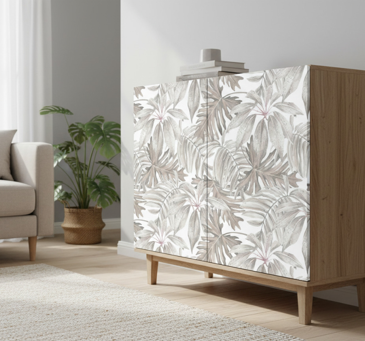Adhésif meuble motif feuilles tropicales douces