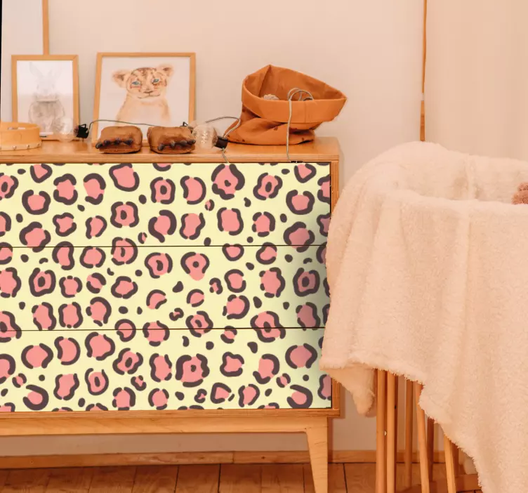 Apportez une touche sauvage à votre intérieur avec notre Adhésif meuble texture fourrure léopard. Ce design captivant évoque l'élégance des meubles ornés de taches de léopard, offrant un modèle unique inspiré des empreintes d'animal qui saura séduire les amateurs de décoration. Le mélange harmonieux de nuances de rose et de motifs audacieux transformera votre espace en un véritable sanctuaire de style !