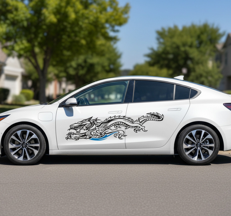 Autocollant voiture carrosserie dragon féroce contouré
