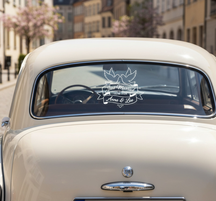 Référence: A54697Découvrez notre autocollant voiture personnalisé colombes "just married", un design graphique délicat et romantique qui embellira à merveille votre voiture le jour de votre mariage ! Avec des colombes élégantes et des motifs floraux, cet autocollant apporte une touche de magie et de joie à votre célébration. Idéal pour les jeunes mariés, il crée une atmosphère festive et mémorable pour tous vos invités.