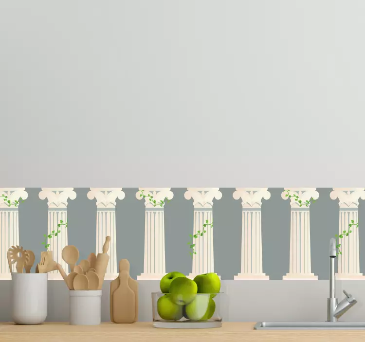Découvrez la Frise autocollante colonne classique accent, un élément décoratif qui allie élégance et charme. Son motif inspiré de l'Antiquité grecque, avec des colonnes majestueuses et des vignes délicates, apportera une touche raffinée à votre intérieur. Idéale pour une conception de cuisine ou pour sublimer tout style intérieur, cette frise est un véritable atout pour votre décoration.