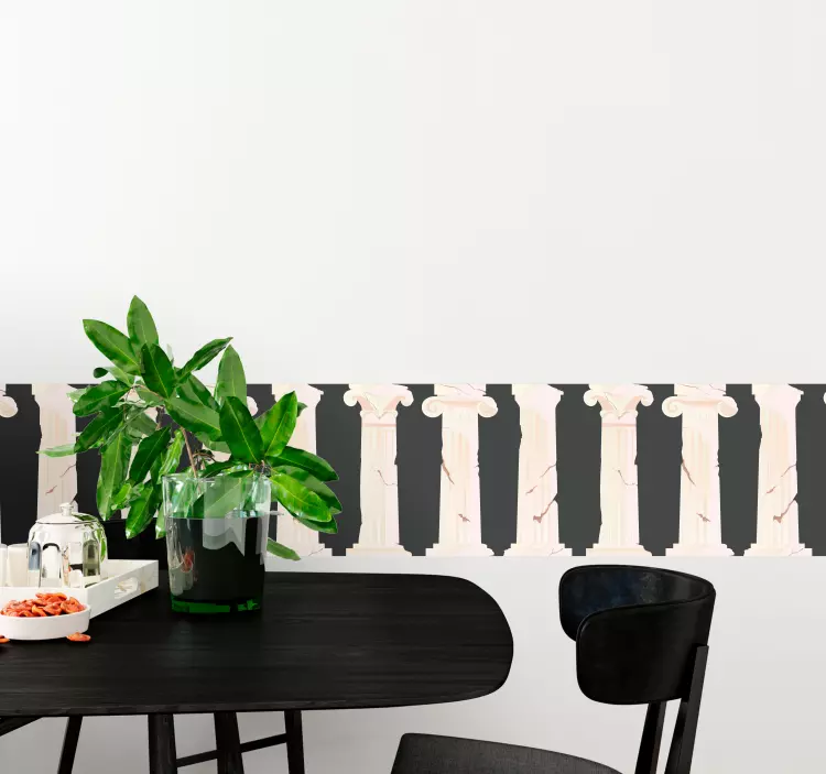 Plongez dans l'élégance intemporelle avec notre Frise autocollante design de colonne classique. Ce motif antique évoque la grandeur des colonnes grecques tout en apportant une touche d'élégance à votre intérieur. Avec son fond noir et ses détails en marbre, cette frise est idéale pour créer une atmosphère traditionnelle et raffinée. Transformez votre espace en un lieu d'inspiration et de beauté !