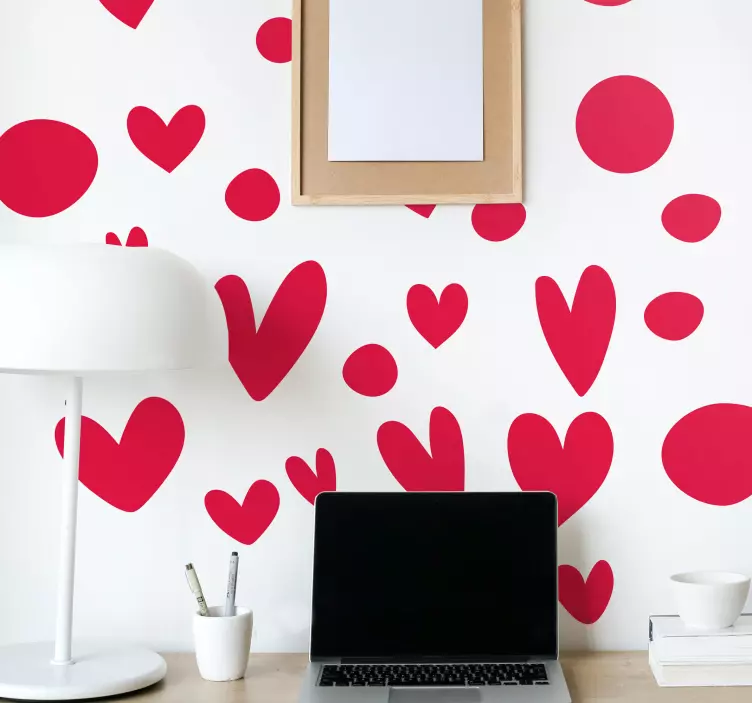 Découvrez notre magnifique Sticker amour formes de cœurs charmants, un design rempli de cœurs espiègles et de points colorés qui apportera une touche de romance à votre intérieur. Avec ses griffonnages délicats, cet ensemble décoratif s'intègre parfaitement dans n'importe quel espace, créant une atmosphère joyeuse et accueillante.
