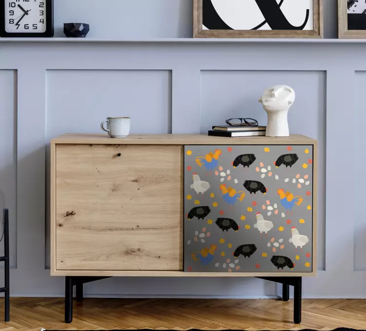 Offrez à votre espace une touche de charme avec le Sticker animaux de la ferme motif animaux de la ferme ! Ce design coloré et espiègle présente des meubles, des poulets et d'autres animaux dans un style unique et joyeux qui saura cultiver une ambiance chaleureuse et accueillante. Que ce soit dans une chambre d'enfant ou une cuisine, ce sticker apportera une note ludique à votre décoration.