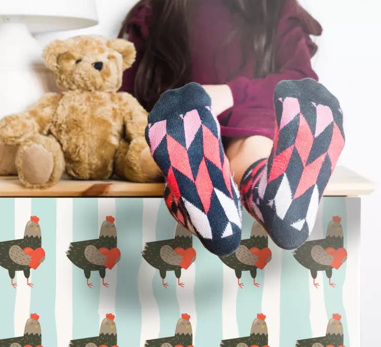 Découvrez notre Sticker animaux de la ferme motif poules charmantes, un design captivant qui allie la beauté des coqs et la tendresse des poulets. Avec des motifs de cœurs et des rayures, ce sticker coloré est parfait pour apporter une touche de charme à vos meubles et à votre décoration intérieure. Ces animaux mignons et ce modèle ludique vous permettent de cultiver une ambiance chaleureuse et accueillante dans votre maison.