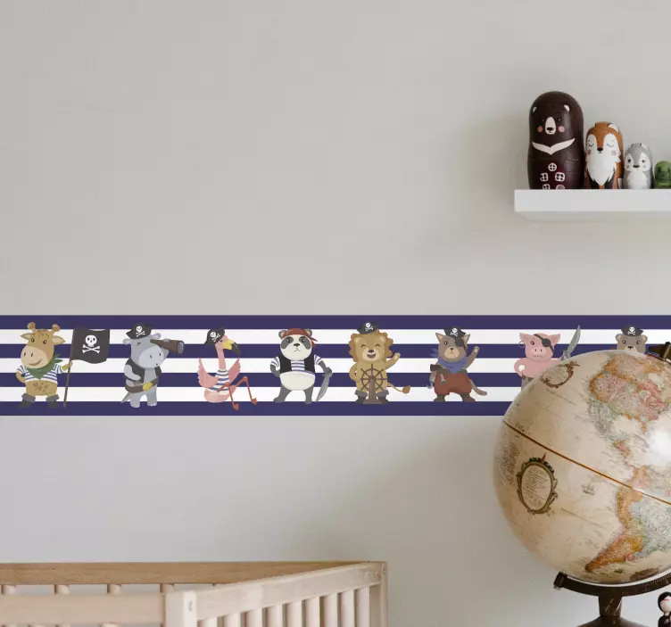 Référence: A47219Une collection vibrante de personnages animaliers sur le thème des pirates présentés dans des postures ludiques. Chaque animal porte divers accessoires de pirate, créant une atmosphère charmante et aventureuse parfaite pour les espaces destinés aux enfants. Le design présente des rayures, ajoutant un élément nautique élégant au thème général.
