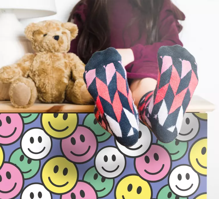 Découvrez notre sticker autres animaux motifs de sourires colorés, un véritable festival de couleurs pastels qui apportera une touche espiègle et vibrante à vos meubles ! Avec des motifs de Smiley amusants, ce design drôle et joyeux transformera n'importe quel espace en un lieu de contentement et de bonne humeur.