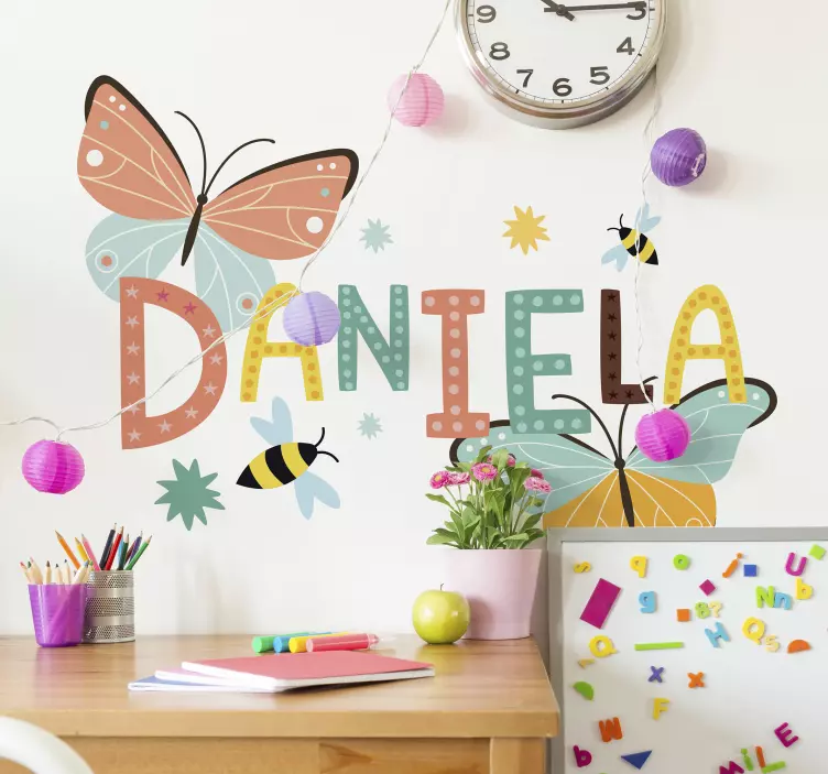 Le Sticker bébé papillons personnalisés avec nom est une excellente façon d'ajouter une touche personnelle à la décoration de la chambre de votre enfant ! Il crée une atmosphère chaleureuse et accueillante remplie de drôlerie et d'amusement. En l'installant, vous transformez un simple mur en un espace de rêve où la jeunesse et la créativité s'épanouissent.