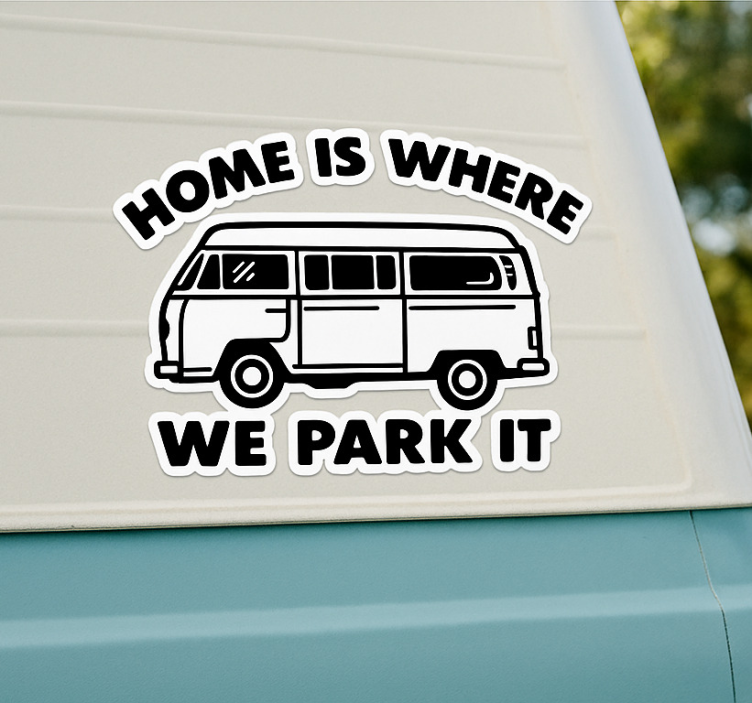 Sticker camping car chez nous, c'est là où l'on se gare