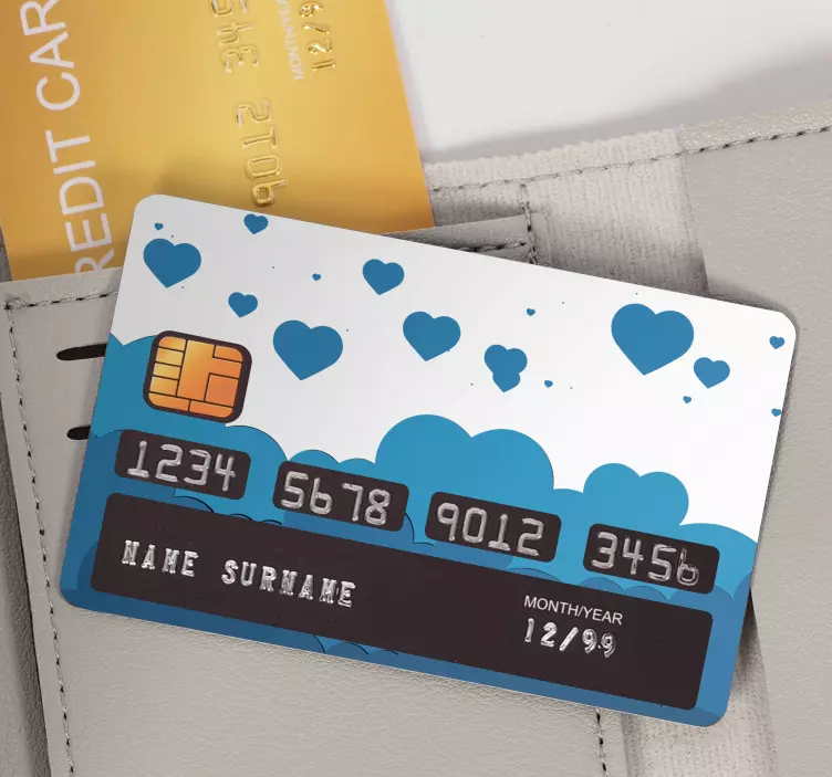 Découvrez notre Sticker carte bancaire motif cœurs nuageux, un design graphique espiègle et charmant qui apporte une touche de fraîcheur à votre carte de crédit. Avec ses cœurs bleus flottant parmi de doux nuages, cet autocollant évoque des sentiments d'amour et de légèreté. Parfait pour ceux qui aiment se démarquer avec style, ce motif unique transformera votre carte de crédit en un accessoire tendance et joyeux !