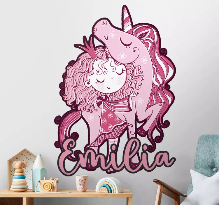 Plongez dans l'univers féerique de notre Sticker chambre enfant licorne rose câline ! Ce design enchanteur, inspiré des contes de princesses, saura captiver les petites filles avec son adorable dessin animé de licorne. Idéal pour une ambiance fantaisie et capricieuse, ce sticker personnalisable apportera une touche unique à la chambre de votre enfant, transformant son espace en un véritable royaume de rêve.
