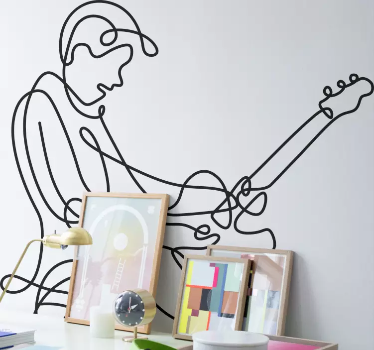 Découvrez notre Sticker rock résumé du musicien, un design captivant qui met à l'honneur l'univers musical à travers un dessin au trait contemporain. Avec des éléments inspirants de musique, d'instruments de musique, de guitaristes et de musiciens, ce sticker artistique apporte une touche unique à votre décoration intérieure.