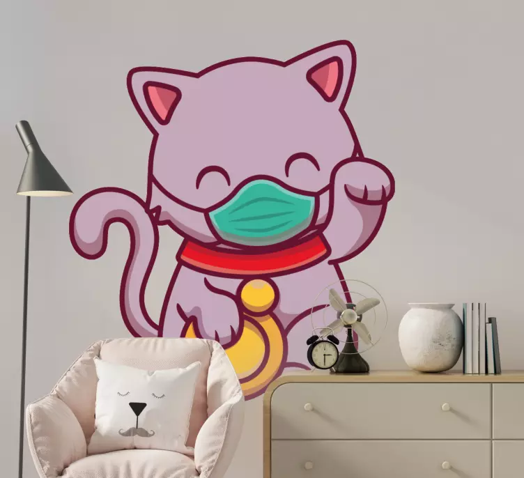 Le Sticker chat heureux avec masque est l'accessoire idéal pour égayer n'importe quelle pièce de votre maison. Sa personnalité pétillante apporte une ambiance chaleureuse et ludique, transformant votre espace en un lieu convivial et accueillant. Offrez-vous un sourire chaque fois que vous le regardez !
