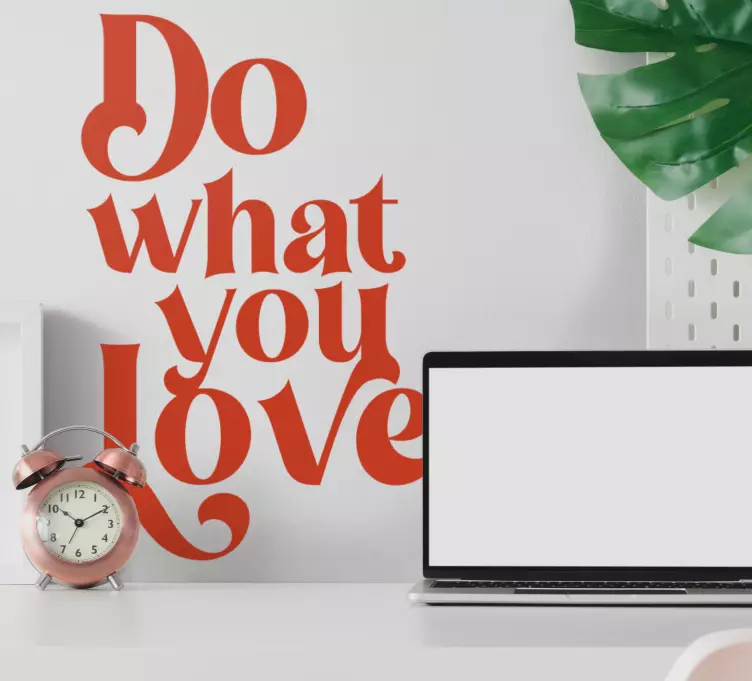 Le Sticker citation sticker citation fais ce que tu aimes est plus qu'un simple élément de décoration, c'est une source d'inspiration quotidienne. En l'intégrant dans votre intérieur, vous vous rappelez de l'importance de suivre vos rêves et vos envies. Ce sticker ajoute une touche personnelle et dynamique à votre espace, tout en vous motivant à faire ce que vous aimez vraiment. Transformez vos murs en un sanctuaire de positivité et d'encouragement !