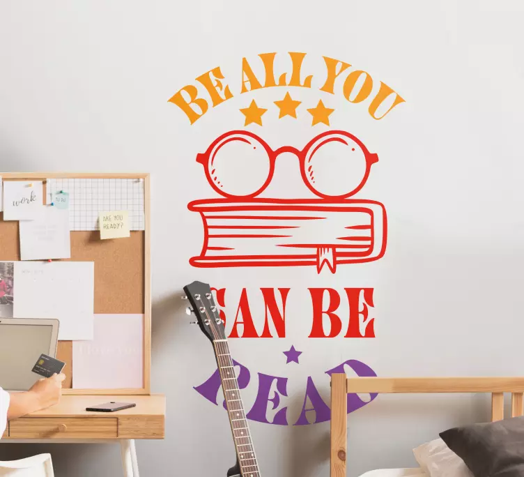 Transformez votre espace avec ce Sticker citation lecture motivante au design urbain inspirant ! Évoquant l'éducation et l'amour de la lecture, ce sticker arbore des motifs de livres, de lunettes et d’étoiles, créant une ambiance à la fois studieuse et motivante. Laissez-vous emporter par ce texte engageant qui saura stimuler votre passion pour la lecture !