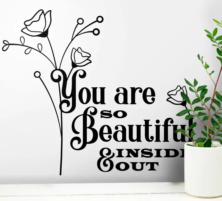 Découvrez notre Sticker citation vous êtes si belle à l'intérieur, un véritable bijou pour votre décoration intérieure ! Avec son design floral et son texte inspirant, cette œuvre d'art embellit votre espace tout en diffusant un message positif. Les fleurs délicates qui l'entourent évoquent la beauté intérieure et rappellent à chacun combien il est important de célébrer chaque jour sa beauté unique. Ce devis encourageant apportera une touche de l'inspiration et de joie à votre quotidien.