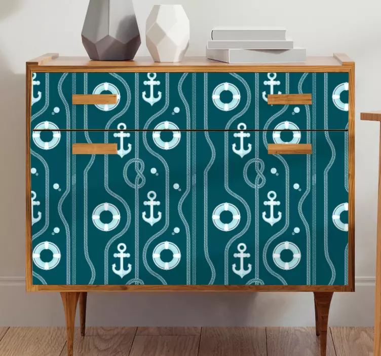 Découvrez notre Sticker déco ancres et bouées, un véritable chef-d'œuvre d'illustration nautique qui apportera une touche unique à vos meubles. Avec ses motifs d'ancre et de bouée en bleu et blanc, ce modèle marin est parfait pour créer une atmosphère apaisante et décorative dans votre intérieur.