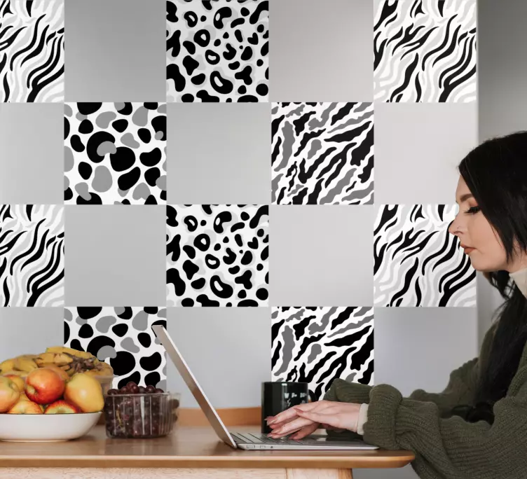 Découvrez notre Sticker déco carreaux à motifs élégants, une véritable œuvre d'art pour votre intérieur ! Avec ses motifs de tuile et carrelage inspirés de l'empreinte d'animal léopard, ce sticker arbore une texture monochrome qui s'intègre parfaitement dans un style moderne. Son design abstrait et géométrique apportera une touche d'originalité à n'importe quelle pièce, transformant votre espace en un lieu à la fois chic et accueillant.