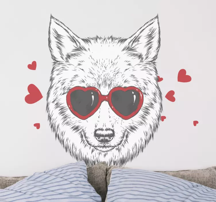 Référence: A47972Une représentation charmante d'un loup portant des lunettes de soleil en forme de cœur, dégageant une ambiance amusante et affectueuse. Les cœurs environnants renforcent son caractère ludique, en faisant un choix délicieux pour apporter du caractère à n'importe quel espace.