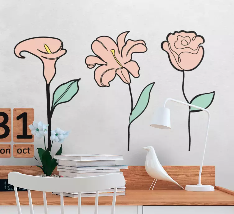 Découvrez notre Sticker fleur composition de fleurs Élégantes, un véritable chef-d'œuvre de design qui embellit votre intérieur ! Avec son motif inspiré de la nature, ce dessin floral allie l'élégance des fleurs et des couleurs pastels pour créer une ambiance décorative unique. Chaque détail est soigneusement conçu pour apporter une touche de fraîcheur et de sérénité à votre espace, transformant vos murs en une véritable œuvre d'art botanique.