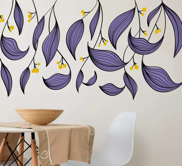 Découvrez notre Sticker fleurs et plantes motif feuilles violettes, une sublime œuvre d'art qui capture la beauté de la nature. Avec ses feuilles suspendues et ses fleurs colorées, ce design élégant et décoratif apportera une touche florale et mauve à votre intérieur. Parfait pour égayer n'importe quelle pièce, ce sticker transforme votre espace en un véritable jardin secret.